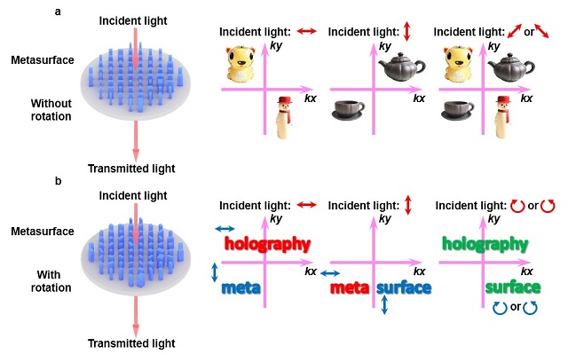 伴隨著微納加工工藝的進步,超穎表面在全息領域展現出了獨特的應用前景。相比于基于空間光調制器的傳統全息方法,基于超穎表面產生的全息再現像的分辨率和再現質量得到了極大地提高,可以克服傳統全息所面臨的諸如帶寬窄、視場角小、存在多級衍射級次串擾、孿生像等挑戰。同時,基于超穎表面的全息方法能夠克服自然界材料(如空間光調制器、光刻膠)對偏振不敏感,僅能實現標量全息的限制。