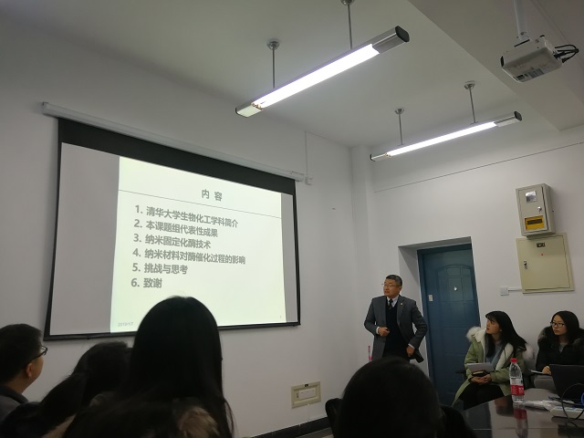 編輯:李亞鑫 審核:李春 閱讀次數:應北京理工大學化學與化工學院李春教授邀請,清華大學生化工程系劉錚教授于2019年1月7日下午來到北京理工大學化學與化工學院,為北理工師生帶來題為 “納米固定化酶技術研究進展” 的學術報告。李春教授主持了學術報告會,化學與化工學院教師及研究生六十余人參加了報告會。