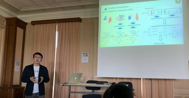 6月,李子睿在“一對一”學術導師、機械與車輛學院智能車輛研究所龔建偉教授指導下,以第一作者身份撰寫學術論文《Transferable Driver Behavior Learning via Distribution Adaption in the Lane Change Scenario》投稿智能車輛領域著名會議IEEE Intelligent Vehicles Symposium (IV)。論文經過同行嚴格評審程序后,被大會Prediction and Decision Making for Socially Interactive Autonomous Driving 分論壇接收。在徐特立學院國際化培養計劃的全額資助下,李子睿前往法國,于6月9日在巴黎會議現場做時長15分鐘的交流報告。報告針對基于遷移學習的駕駛員模型在車輛換道場景中的應用進行了表述和分析。