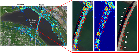 在前期的研究成果中,研究團隊已解決了系統成像問題(圖2),但在三維形變高精度反演、精度評估模型等方面存在理論和算法上的難點問題需要解決。本研究中,研究團隊通過引入雙基地永久散射點(PS點)技術,針對性的提出多維PS點關聯處理思路,融合多星觀測數據,解決了三維形變高精度反演問題。進一步,通過拓展傳統導航定位精度幾何散度因子模型(GDOP),建立了面向基于導航衛星的干涉合成孔徑雷達形變反演的新的擴展GDOP模型,解決了該技術的三維形變測量精度準確評估的問題。