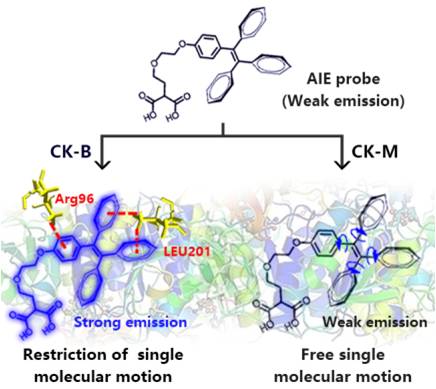 北理工在基于單分子旋轉(zhuǎn)受限的AIE熒光探針選擇性點(diǎn)亮肌酸激酶特定亞基取得研究進(jìn)展