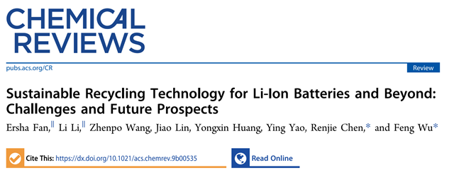 北京理工大學在Chem. Rev.上發表《鋰離子電池及電池新體系的可持續回收技術:挑戰和未來前景》綜述文章