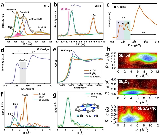 圖2 Sb SAs/NC單原子催化劑的化學態和配位環境