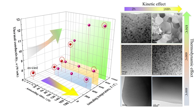 圖1 合金微微結(jié)構(gòu)演化與熱導(dǎo)率關(guān)系