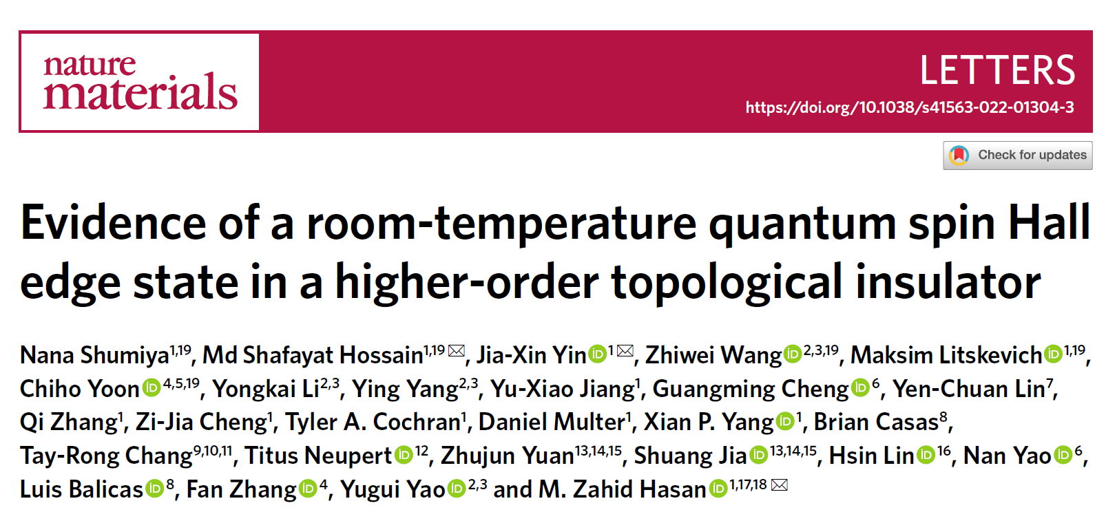 北理工團隊與普林斯頓大學合作發現室溫量子自旋霍爾邊緣態存在的證據