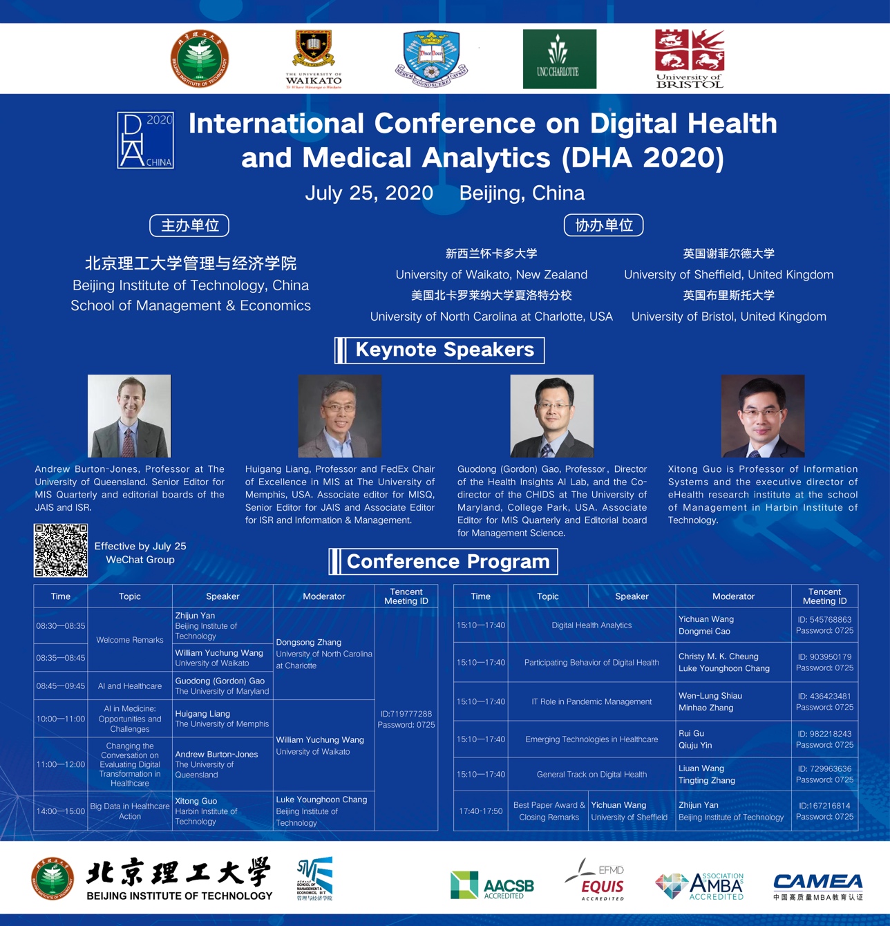 北理工管理與經(jīng)濟學院主辦智慧健康與醫(yī)療分析國際研討會(DHA2020)