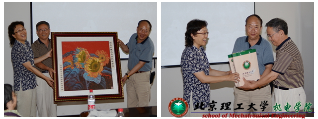 座談會結束后,校友代表為學院贈送了精心制作的油畫。同時,栗蘋書記代表學院向校友們贈送了紀念品。