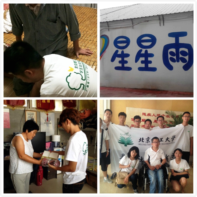 佘藝的團隊在發放問卷,實地采訪上都下足了功夫,實現了“心語”主題的公益活動。6月組團,8月出發,丁柯委的實踐團隊為回放敬老院做了充分準備。胡景暢的團隊前往電影《海洋天堂》里的“北京星星雨教育研究所”關愛自閉癥患者,傳遞來自背離的溫暖。劉旺等5名同學則于7月8日走進灤南縣“愛心小院”,進行為期四天的社會實踐活動。