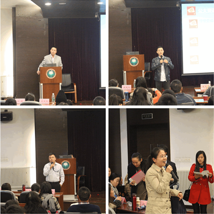 隨后,其他嘉賓根據自身國考或工作經歷,詳細講述了從事公務員工作的真實感受。申論近九十分的公安部團委書記趙慶林針對申論的復習提出了六點建議,分別是:做真題、找熱點、上網查、建思路、打模板、練卷面。審計署團委書記曲煒結合中央國家機關信息化建設的大背景,介紹了計算機相關專業(yè)畢業(yè)生在公務員系統(tǒng)的就業(yè)前景。中央辦公廳優(yōu)秀青年干部江城從«戀愛的犀牛»這一美麗的愛情故事說起行測復習經驗,尤其強調了資料分析題的重要性。外交部團委書記李平一,與同學們分享了他在巴勒斯坦哈馬斯做首席外交官和他在利比亞協助撤離三萬中國公民時的經歷,讓在場所有人不禁熱淚盈眶。