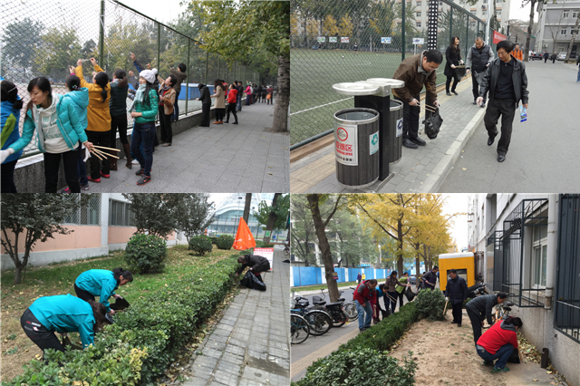 集團黨委廣泛動員,各黨支部組織全體干部職工積極參與到本次清掃活動中。物業服務中心將中關村校區內的主要路面及綠地劃分為10個區域(含家屬區、教學區、宿舍區),分別由10個黨支部牽頭負責,重點清理綠地、綠籬中的白色垃圾、枯枝以及綠地周邊的自行車、路面不易清掃的衛生死角。