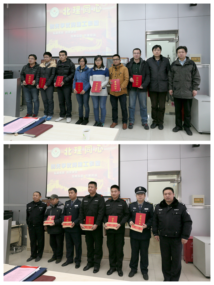 郝洪濤和代方震同志為獲得研究生“助管實踐優秀標兵”的同學們頒發證書。齊軍和張濤警官為打擊校園違法犯罪作出突出貢獻的保衛處工作人員、保安員頒發證書及獎勵。齊軍警官代表分局對受到表彰的個人表示祝賀。他說:學校黨委非常重視校園安保工作,在人防、物防和技防的建設上給予了大量的支持,北理工治安制度健全,各項工作踏實,打擊違法犯罪經驗豐富,工作中吃苦耐勞,對案件進行分析、總結及時到位,近幾年校園發案率持續降低,破案率遙遙領先(目前,在校內被發現違法亂紀犯罪分子的抓獲率不低于95%)。同時,他要求保衛處要加強反恐意識和應急演練,提升突發事件第一時間有效處置的能力。