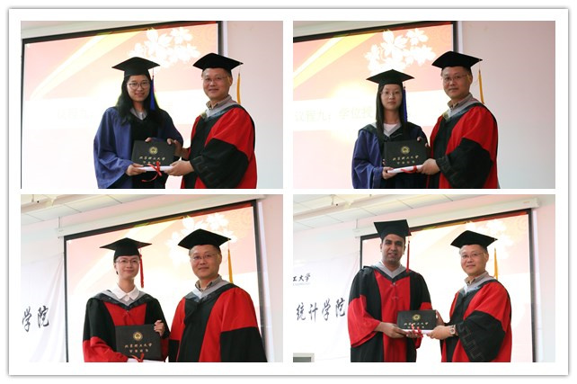 數(shù)學(xué)統(tǒng)計(jì)學(xué)院副院長(zhǎng)史福貴教授宣讀授予學(xué)位的決定。在悠揚(yáng)的音樂(lè)聲中,學(xué)院黨委副書記副院長(zhǎng)衡靖為優(yōu)秀畢業(yè)生代表頒發(fā)榮譽(yù)證書。