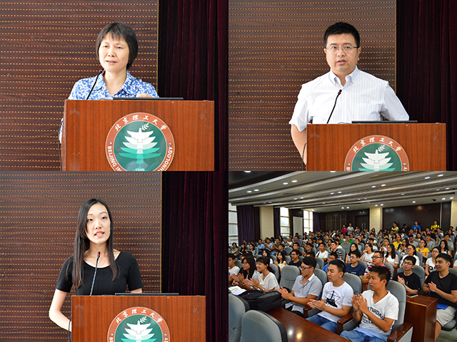 接下來進行的入學教育環節,黨委副書記副院長奚英倫、研究生教學干事來林靜、學生干事董霞、輔導員郝志敏分別針對研究生培養和管理等相關問題向新生同學們進行了介紹。