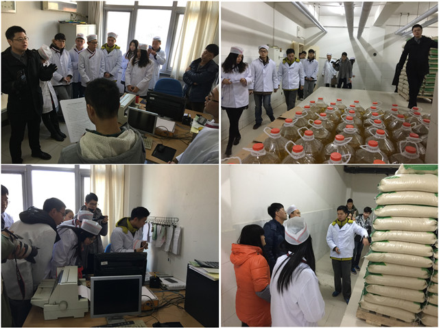 餐飲服務中心物資供應部主任武默涵帶領學生先行參觀了良鄉采購站,介紹了食品原材料的采購流程和供貨商的選擇途徑等,并強調了食堂所使用的食品原材料都來自高校聯合采購中心認證合格的供貨商,其中米、面、油等大宗原材料均由北京高校基地直供,日常管理中也對原材料的質量嚴格把關和檢驗。隨后武主任向學生現場展示了供應商資質和驗貨單等表單,又帶領學生們參觀了副食庫、主食庫和冷庫,并講解了食品原材料出庫、入庫、存儲等環節嚴格的工作制度和注意事項。尤其針對學生普遍關心的食用油問題解答了疑惑,強調了食堂所使用的油是進口無調和的純大豆油。