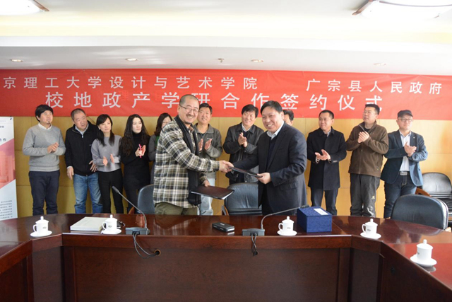 2016年12月30日上午,北京理工大學設計與藝術學院與河北省廣宗縣產學研合作簽約儀式在學校舉行。設計與藝術學院院長楊建明、黨委書記郭宏、副院長姬勇和學院師生代表,以及河北省邢臺市廣宗縣縣長吳建英、副縣長文青峰和相關單位負責人出席了會議。會議由郭宏主持。
