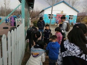 志愿者為孩子們輔導功課 志愿者和孩子們一起勞動