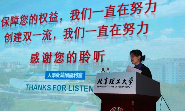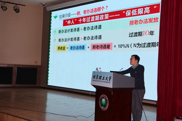 楊靜對到會(huì)人員表示歡迎。她表示,養(yǎng)老保險(xiǎn)改革和每一位老師的切身利益息息相關(guān),隨著市場經(jīng)濟(jì)的發(fā)展,事業(yè)單位現(xiàn)行養(yǎng)老保險(xiǎn)制度顯現(xiàn)出各種問題,改革勢在必行。薪酬福利辦公室高級主管王智鵬從機(jī)關(guān)事業(yè)單位工作人員養(yǎng)老保險(xiǎn)改革相關(guān)政策,退休中人待遇核定辦法,我校退休人員近年待遇調(diào)整介紹三個(gè)方面進(jìn)行了詳細(xì)講解。