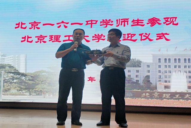 歡迎儀式上,王偉代表學校熱烈歡迎北京市一六一中學師生的到來,并表達了五四青年節的祝福;尹力從北理印象、校園文化、人才培養和就業深造等方面對學校進行了詳細介紹,并向大家講解了學校招生相關政策,同時歡迎各位同學報考北理工,追逐夢想;范宏軍代表北京一六一中學對北理工的邀請和熱情接待表示衷心的感謝,隨后雙方互贈了學校紀念品。