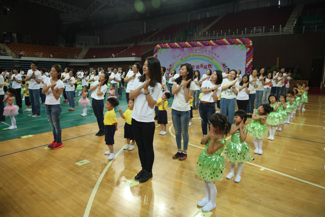 親子律動《幸福的臉》,爸爸媽媽和孩子們一起踩著節拍,跳著歡樂的舞蹈,感受著屬于他們的幸福。老師為每一個小朋友提供上臺展示的機會,讓每一個小朋友在同伴的掌聲中,老師的鼓勵中獲得自信,獲得幸福的體驗。