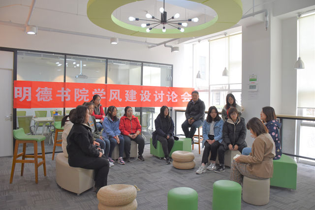 為深入貫徹落實全國教育大會精神,落實學校2019年工作部署,強化學風建設,推進學?!半p一流”建設和人才培養質量提升,3月28日下午,明德書院在良鄉校區學業指導中心開展明德書院學風建設討論會暨“學風大討論”啟動儀式。明德書院副院長李冰、明德書院專兼職學生工作干部與學生骨干參加了會議。