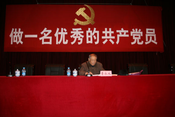 2010年1月14日下午,后勤集團黨委在七號樓報告廳組織全體黨員及入黨積極分子進行黨課學習。黨課的主講人邀請的是原北京理工大學總務長曹永義,曹老今年已八十歲高齡,離休二十年來一直關心學校的建設發展,尤其對后勤的改革發展十分關心,對后勤有著濃厚的感情,對后勤工作戰線上的黨員同志有很多期望和寄語,為此集團黨委組織了這次聽老黨員講如何“做一名優秀的共產黨員”。黨課由后勤集團黨委副書記姜金鳳主持。