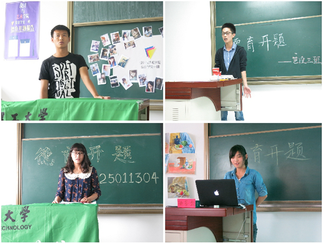 通過年級大會,班委例會動員等方式,設計學院2013級本科各班同學對此次德育開題提高了認識, 每位同學不僅認真準備了《北京理工大學2013級本科生德育開題報告提綱》、《北京理工大學德育開題報告》以及精美的PPT,而且不同班級布置了形式多樣的會場,為德育開題報告會營造了熱烈的氣氛。
