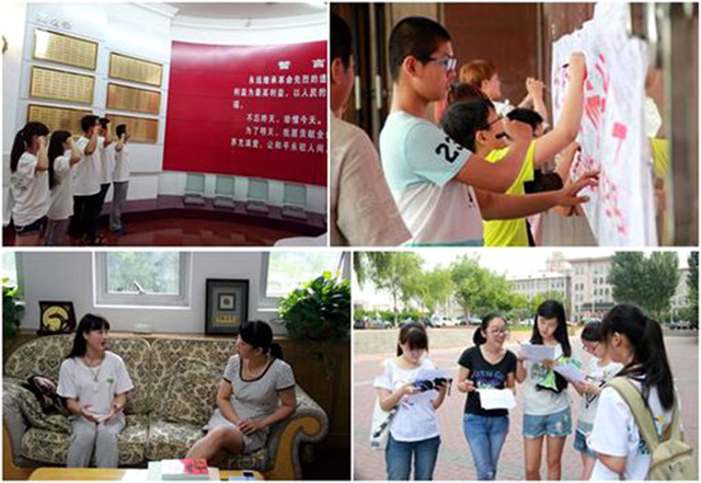 今年恰逢抗日戰爭勝利70周年,理材學部實踐團一行8人赴東北開展了主題為“抗戰文化的保護和推廣策略”的社會調研。持續八天的活動包括了傳統的實地參觀、人物訪談等環節,也囊括了主題簽名、理論學習等形式較為新穎的題材。同學們的足跡遍布了包括中國抗日戰爭紀念館、九一八歷史博物館、東北烈士紀念館等在內的11個紅色景點。最終,實踐團累計收回有效問卷378份,調研目標覆蓋了不同年齡階段和社會職務的人群。活動開展過程中,實踐團還有幸采訪了九一八博物館館長范麗紅,了解最前沿的紅色遺址保護措施。9月,實踐團撰寫了《東北三省紅色遺址保護現狀及影響因素研究》。目前該調研報告正在投稿發表的過程中。