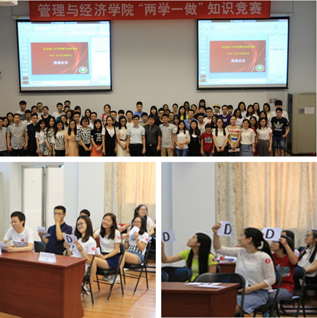 自“兩學(xué)一做”學(xué)習(xí)教育工作開展以來,管理與經(jīng)濟(jì)學(xué)院黨委對(duì)全院師生黨員提出要求:全體黨員要統(tǒng)一思想,高度重視,各盡其責(zé),做到認(rèn)識(shí)到位、行動(dòng)到位,務(wù)必使學(xué)習(xí)教育落到實(shí)處、見到實(shí)效。每位黨員同志都要結(jié)合自身實(shí)際,力求一個(gè)“真”字,突出一個(gè)“實(shí)”字,求真務(wù)實(shí)抓好學(xué)習(xí)教育活動(dòng)。學(xué)院黨委在落實(shí)“兩學(xué)一做”學(xué)習(xí)教育工作計(jì)劃中,始終注重處理好“學(xué)”與“做”的關(guān)系,使學(xué)做互促,相得益彰,圍繞學(xué)院中心工作,開展系列活動(dòng),取得了階段性成果。