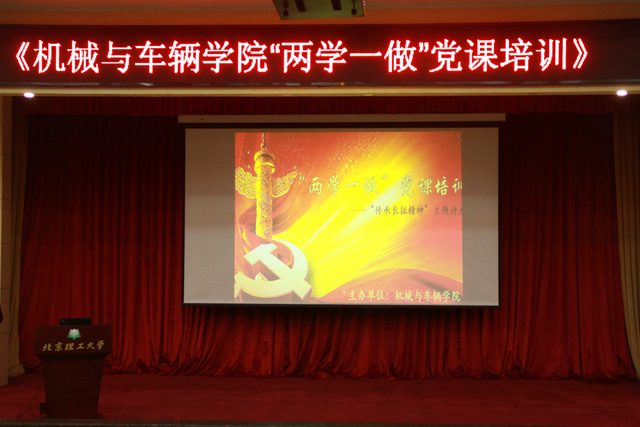 2016年10月27日晚,北京理工大學機械與車輛學院“兩學一做——學習踐行長征精神”主題教育活動在中關村校區中心教學樓報告廳順利舉行。學院邀請了生命學院黨委書記劉存福擔任活動主講人,機械與車輛學院黨委書記左正興、副書記副院長范文輝、學生工作辦公室成員以及教工黨員、學生黨員等共計450余人參加了本次活動。