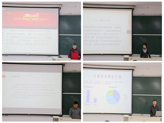 教工和學(xué)生黨支部書(shū)記進(jìn)行了述職,各支部基本圍繞以下幾點(diǎn):支部成員及其發(fā)展情況;學(xué)習(xí)實(shí)踐“兩學(xué)一做”情況;支部黨建工作情況;支部成員內(nèi)部開(kāi)展學(xué)習(xí)實(shí)踐情況;工作中存在的問(wèn)題及下一步工作計(jì)劃。龐書(shū)記對(duì)各位支部書(shū)記的講話進(jìn)行了總結(jié),并希望各支部高度重視支部建設(shè),爭(zhēng)取打造出每個(gè)支部自有的特色,并通過(guò)工作總結(jié),歸納成績(jī)、尋找差距、明確努力方向。
