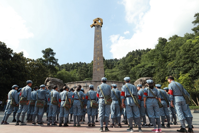 為提升學(xué)習(xí)效果,此次實踐學(xué)習(xí)立足遵義特有的紅軍長征歷史資源,組織了豐富而生動的現(xiàn)場教學(xué)活動。在鳳凰山紅軍烈士陵園,全體學(xué)員向革命烈士紀(jì)念碑敬獻(xiàn)花圈,念革命先烈拋頭顱灑熱血,聽“紅軍菩薩”故事感人至深;在遵義會議會址,學(xué)員們透過陳列館中珍貴的革命文物和歷史資料,感受著這一具有偉大轉(zhuǎn)折意義的歷史事件所傳遞的寶貴精神和深遠(yuǎn)啟示;在茍壩會議會址,學(xué)員們通過還原遵義會議前后真實的歷史背景,深深的感動于當(dāng)年革命領(lǐng)袖和廣大共產(chǎn)黨人顧全大局講政治、忠誠于黨守紀(jì)律、堅持真理敢擔(dān)當(dāng)?shù)母锩?;在赤水河畔,學(xué)員們重溫了四渡赤水出奇兵的光輝篇章,感受毛澤東等老一輩軍事家精妙絕倫的軍事指揮藝術(shù)和紅軍與強敵英勇抗?fàn)帯⒍分嵌酚碌膫ゴ缶瘢辉趭渖疥P(guān)、西風(fēng)臺、大小尖山紅軍戰(zhàn)斗遺址,學(xué)員們感慨毛主席《憶秦娥·婁山關(guān)》慷慨悲烈、雄沉壯闊的胸懷與氣度的同時,在婁山關(guān)革命烈士紀(jì)念碑前,共同重溫入黨誓詞,不忘入黨初心。
