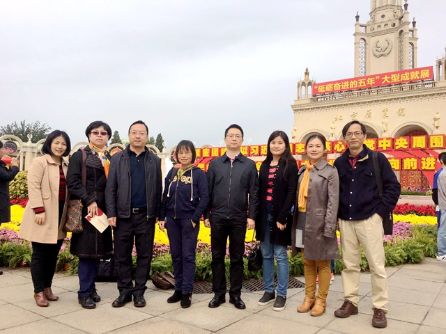 順著參觀隊(duì)伍的長流大家依次領(lǐng)取了門票、通過了安檢門之后,映入眼簾的是布置一新,五彩繽紛的院前廣場。十月的北京鮮花盛開,濃墨重彩的廣場給人以喜慶的精神,與國慶、十九大的召開相得益彰。