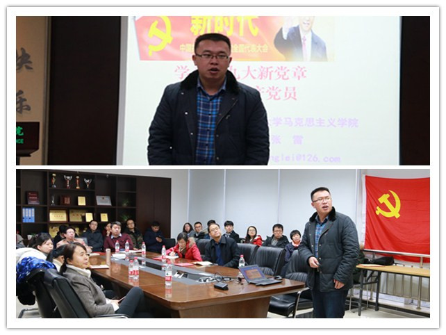 最后,劉存福進行了總結。他強調,要深入學習新黨章,不斷增強黨性意識,時刻牢記黨的宗旨,做到不忘初心。要用習近平新時代中國特色社會主義思想武裝頭腦,一切依靠師生,一切為了師生,落實好以師生為中心的發展理念。各黨支部要組織學原文、學重點,認真學習貫徹十九大精神,團結帶領黨員群眾投身“雙一流”建設。