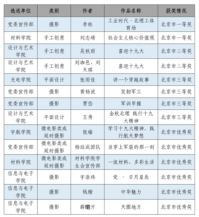 北理工學生在此次活動中共斬獲一等獎2項、二等獎2項、三等獎4項、優秀獎6項,同時我校榮獲優秀組織獎。