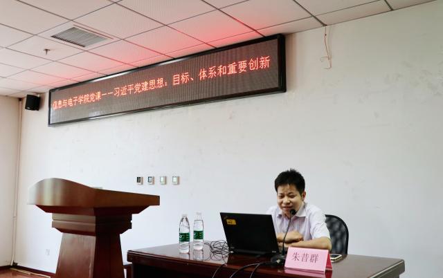 編輯:曹安琪 審核:薛正輝 閱讀次數:為深入學習貫徹習近平新時代中國特色社會主義思想和黨的十九大精神,在中國共產黨成立97年紀念日到來之際,信息與電子學院于6月21日下午邀請中央黨史和文獻研究院當代馬克思主義研究部黨建研究處處長、研究員朱昔群,講授《習近平黨建思想:目標、體系和重要創新》為題的專題黨課。本次黨課由學院黨委書記薛正輝主持,學院全體教工黨員和學生黨員代表參加。