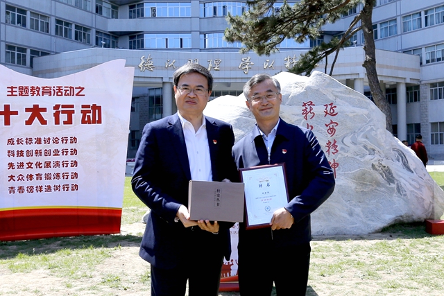 張軍校長為楊世澤頒發校外輔導員聘書,并贈送了《北京理工大學校史叢書》。