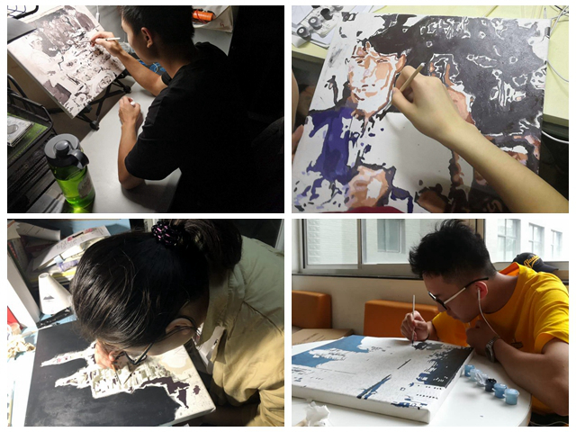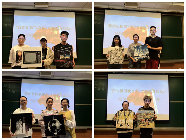 在學(xué)習(xí)動(dòng)員階段,全院各團(tuán)支部在認(rèn)真學(xué)習(xí)習(xí)近平總書記在紀(jì)念五四運(yùn)動(dòng)100周年大會(huì)講話的基礎(chǔ)上,積極組織征集祖國發(fā)展建設(shè)成就的代表性圖片,引導(dǎo)廣大青年學(xué)生從今昔對比的角度,搜集綜合國力、航空航天、代表建筑、生態(tài)環(huán)境、交通發(fā)展、文化建設(shè)、人民風(fēng)貌、生活品質(zhì)方面代表性的圖片24組,通過主動(dòng)搜集實(shí)現(xiàn)主動(dòng)思考;創(chuàng)作實(shí)踐階段,學(xué)院專門將圖片定制為數(shù)字油畫,組織集體繪制,經(jīng)過一筆一劃的細(xì)致描繪,完成了16幅油畫作品。