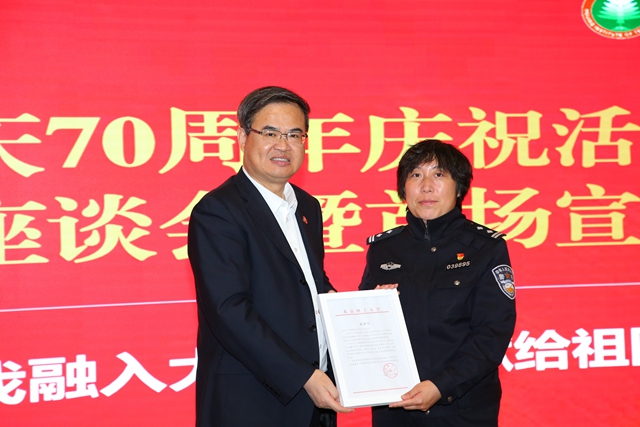 張軍為甘家口派出所贈送感謝信,感謝他們有力保障我校圓滿完成國慶各項任務;為發言師生代表頒發“時代新人說”宣講團聘書。張軍勉勵大家,要將參與此次國慶任務所激發的愛國熱情轉化為愛國報國行動,將其帶入到學習、生活和工作中,永葆愛國情懷,傳承紅色基因,把完成國慶任務作為新的起點,努力走好新時代的長征路。
