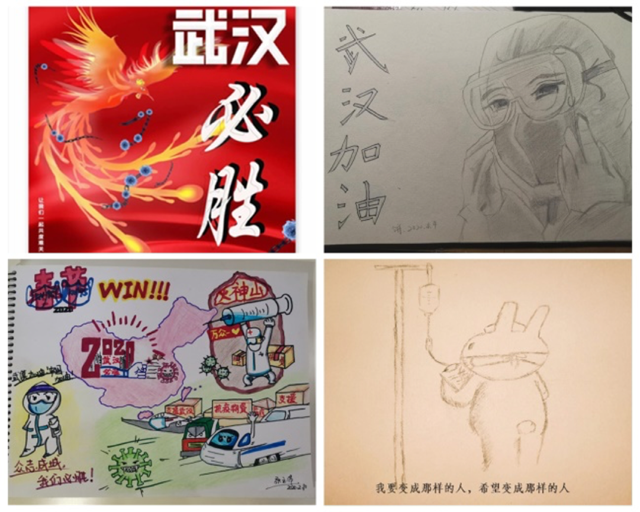 疫情期間,學生利用居家時間,進行了形式多樣、豐富多彩的創作,以此來表達對一線醫務人員的崇高敬意和打贏疫情狙擊戰的決心。學生借此機會分享了自己的作品及創意。明德書院明宸團支部楊帆展示了海報作品《浴火重生,武漢必勝》,如同一只浴火重生的火鳳凰,武漢一定能夠突破病毒的鎖鏈,這座英雄的城市必將贏得勝利。法學院2019級學碩團支部張簫予分享了原創視頻《醫者》,表達了對醫護人員舍小家為大家的敬佩之情。大家將心意融入創作,用作品傳遞溫暖與力量,以青年人的方式為抗疫加油。