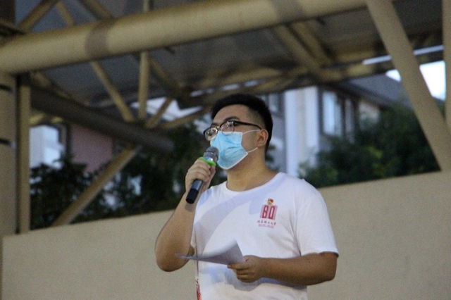 “猶記得去年此時,在國慶活動的籌備保障中,北理工共有5058位師生參與了閱兵儀式、群眾游行、廣場合唱、聯歡盛會等7項任務中……參與廣度、深度均為北京市高校之最。在國慶系列活動中,我校師生用汗水和毅力譜寫出了與國家同頻共振的紅色史詩。”作為國慶70周年慶祝活動合唱方陣的一員以及首都教育系統服務保障國慶活動宣講團的一員,來自求是1823班的毋紹博分享起去年參與國慶慶祝活動的點點滴滴,仍然十分動情。現場的聽眾隨著他的講述,仿佛又一次回到了國慶七十周年閱兵活動的現場,仿佛能一同見證那壯觀威嚴的裝備、整齊劃一的方陣、和屬于北理學子那最美的芙蓉花束及鏗鏘的步伐。