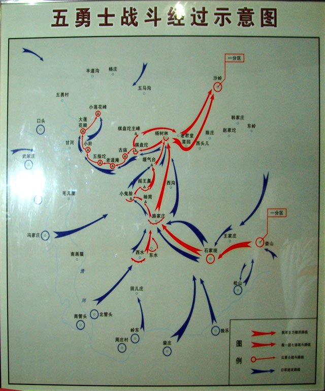 為紀念“狼牙山五壯士”英勇獻身的精神,建塔紀念,聶榮臻元帥親筆題寫“狼牙山五勇士紀念塔”,該塔底層有五勇士頭像浮雕。塔內有鋼梯直通塔頂,上塔頂涼亭俯瞰,千峰競立,浮云繚繞,狼牙山雄姿盡收眼底。游人至此,瞻仰當年五勇士英勇殺敵和舍身跳崖之處,緬懷勇士,憑吊英靈,千般感慨,萬縷情思,不禁油然而生。