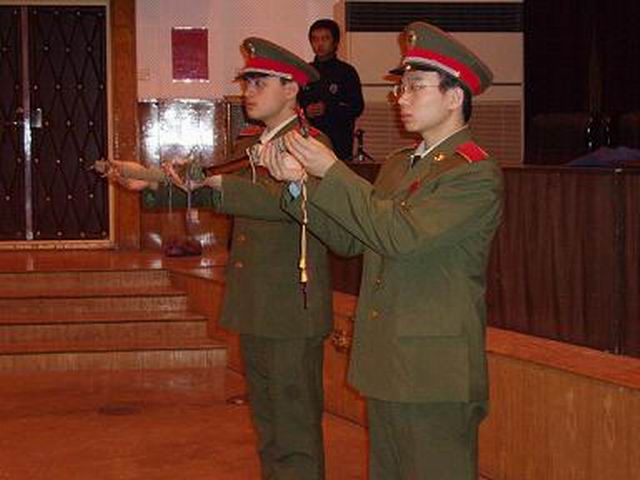國防生現場展示老英雄當年繳獲的日本軍刀