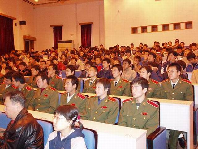 11月18日上午9點,一個略有寒意的早晨,在七號教學樓報告廳內。機電工程學院馬列主義學習會300多名黨課學員以及部分04級國防生準時參會,他們準備充分,對將要進行的講座充滿了期待。9點鐘時,老英雄趙寶生老爺爺到達了報告廳,受到了在場全部學員的熱烈歡迎,講座終于開始了,他先向同學們闡述了抗日的世界意義和不忘歷史,珍愛歷史的責任。他說:”抗日戰爭的勝利是中國人民和世界人民共同“打”的結果,這“打”換來了勝利,卻因此而犧牲了許許多多的人民,在這樣的慘痛教訓中,我們全世界人民懂得了和平才應該是我們所追求的,沒有戰爭、沒有動亂是我們全世界人民共同的心聲。”同學們深表贊同,接著他還生動的向同學們講了他親身經歷的三個著名的戰斗,1943年12月2日反“掃蕩”運動,1944年1月的季朗襲擊戰等。最后老英雄囑咐并希望我們學員要繼承老前輩的光榮傳統,為建設國家而做出自己的貢獻,珍愛和平奔小康。