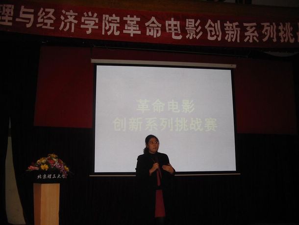 這次挑戰(zhàn)賽是管理與經(jīng)濟學(xué)院共產(chǎn)主義學(xué)習(xí)會在共產(chǎn)主義理論學(xué)習(xí)創(chuàng)新之路上的又一步嘗試。比賽共分三個環(huán)節(jié):圍繞革命電影的主題演講、朗誦,革命電影配音,參賽隊自由創(chuàng)新展示。經(jīng)過選拔,進入決賽的有五支隊伍:08110501班一隊,參賽電影《張思德》;08110501班二隊,參賽電視劇《亮劍》;08110502班,參賽電影《紫日》;08220501班 參賽電影《董存瑞》;08310501班,參賽電影《空山》。擔(dān)任評委的老師有:人文學(xué)院王立群老師、理學(xué)院周波老師、軟件學(xué)院胡曉艷老師、設(shè)計藝術(shù)學(xué)院武靖宇老師、管理與經(jīng)濟學(xué)院袁丹、趙建喆老師,到場嘉賓有各個學(xué)院共學(xué)會的學(xué)生代表與老師。