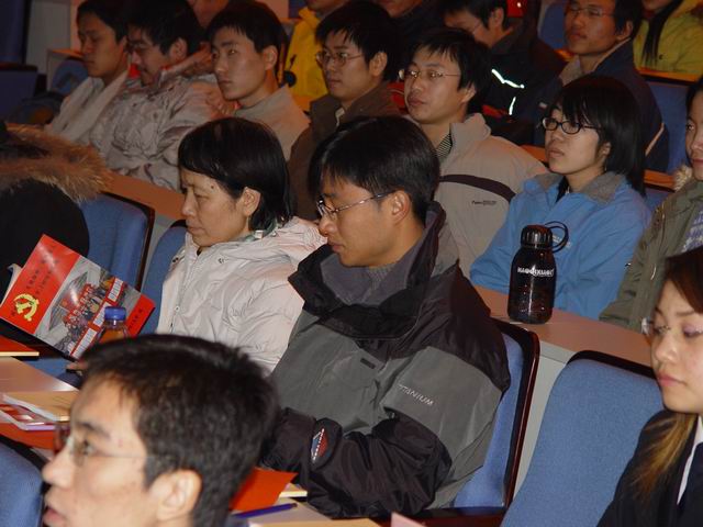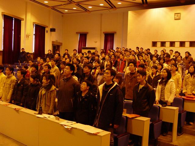 參加會議的有黨委組織部副部長楊惠萍老師、機電學院主管學生工作董兆波老師、學院各學生黨支部書記以及學院2003級、2004級的全體黨員和積極分子。大會在全場齊唱《國際歌》后拉開了帷幕。