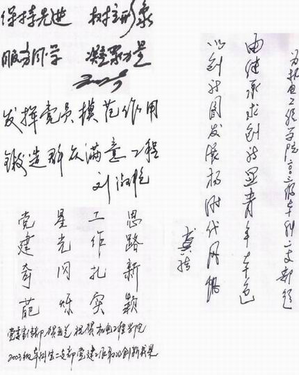 學校黨委學生工作部、黨委組織部、黨委宣傳部、學院黨委領導為支部寄語