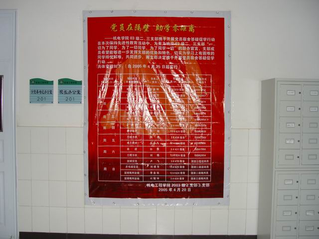 2005年4月25日至6月25日期間,我支部共有14名優秀黨員擔任了此次活動義務答疑人的工作,他們在此間8個星期的48個值班日中,14名黨員共有96人次等候在學生宿舍對到訪同學進行答疑解惑,共接待同學答疑數百人次,答疑科目覆蓋上學期全部8門課程。此活動受到了廣大同學熱情歡迎,取得了良好效果。本學期,支部專門召開兩次骨干會議,總結并研討第一期助學活動的經驗和不足,于11月25日開始,正式啟動了支部第二期“黨員在隔壁 助學零距離”活動。