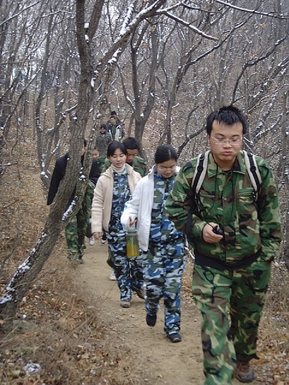 活動前一天晚上下了場小雪,清晨的百望山上積雪未退,同學們冒著寒冷登山,頗有當年長征之意。