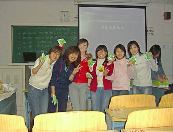 08210401班團支部舉行了趣味十足的長征知識競賽活動。圖為獲勝隊高興的獲得獎品
