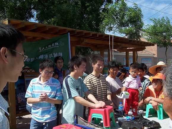 同時,在旁邊的乒乓球臺上,幾名同學(xué)進(jìn)行著奧運(yùn)知識有獎競答活動,村民們都積極踴躍的參加。我們帶去了一些小的生活用品,如衣架、坐墊、小凳子等,村民們只要能答對提問,就會得到一個小禮品。有一位老大爺對奧運(yùn)知識知道的較多,對好多題目他都能夠準(zhǔn)確的答出;還有幾個小女孩也時常能回答幾個問題,還給大家表演了唱歌。就這樣村民們在歡聲笑語中學(xué)到了一些關(guān)于奧運(yùn)的知識,活動大約進(jìn)行了兩個小時,順利結(jié)束了。